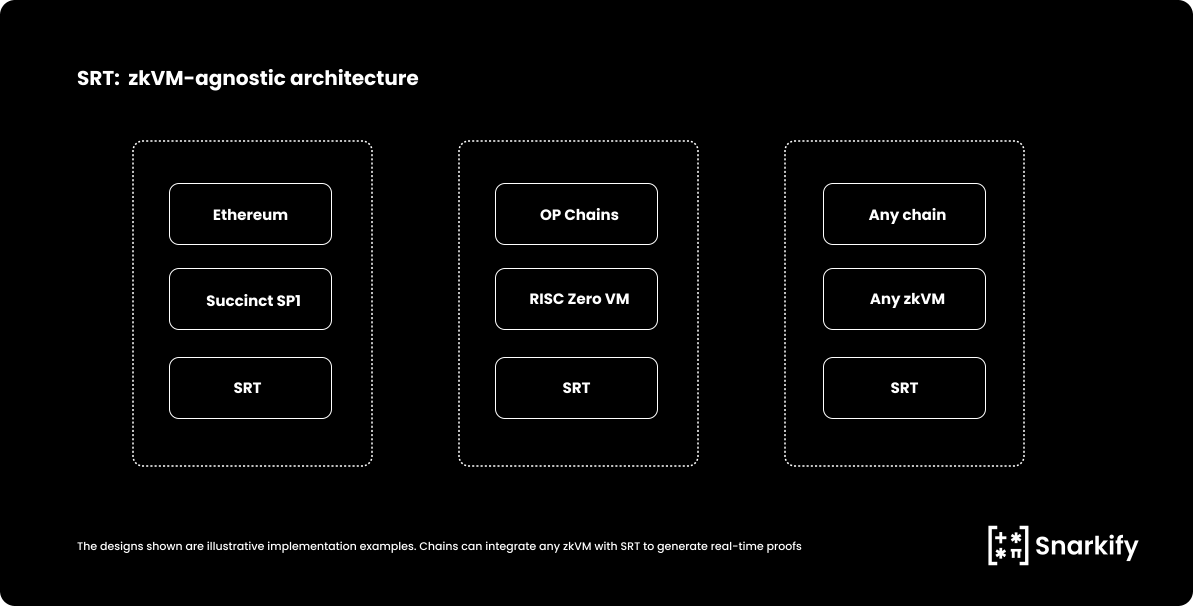 With SRT integrated, zkVM teams can deliver fast and efficient proof generation as part of their core stack. SRT will take care of proving performance, allowing teams to focus on what drives adoption: new features, developer experience, and protocol resilience. Stronger stacks will provide chains with real-time settlement and the capabilities to support a new era of real-world applications built on verifiable compute.